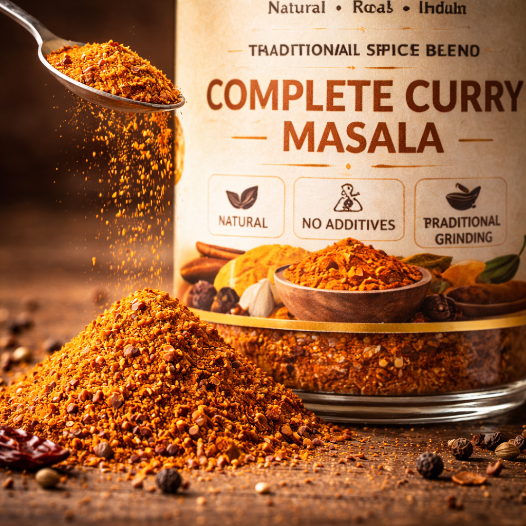 Simplify your cooking with our Complete Curry Masala, a perfectly balanced blend of handpicked spices crafted using traditional recipes.