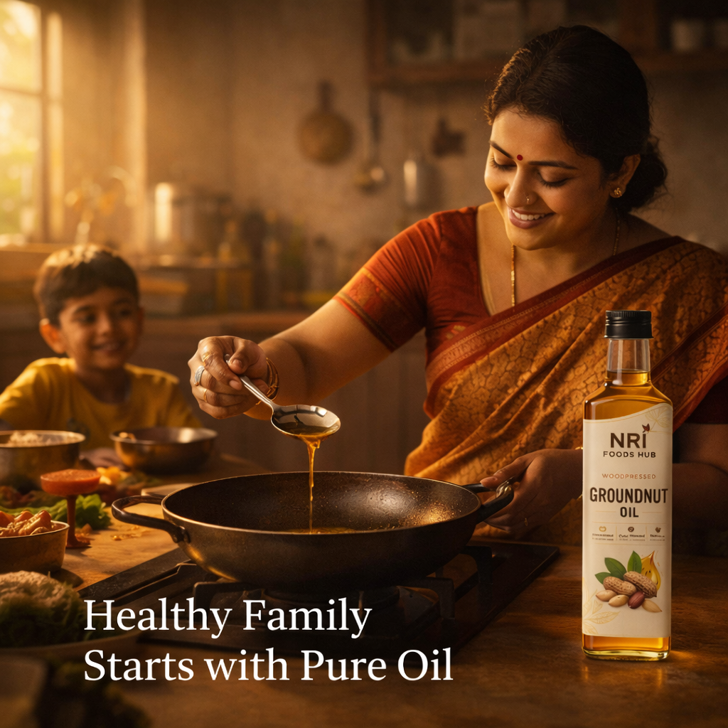 Experience the richness of traditional oil extraction with our Wood Pressed Groundnut Oil, extracted using the age-old cold-press method to retain natural nutrients, aroma, and authentic taste.